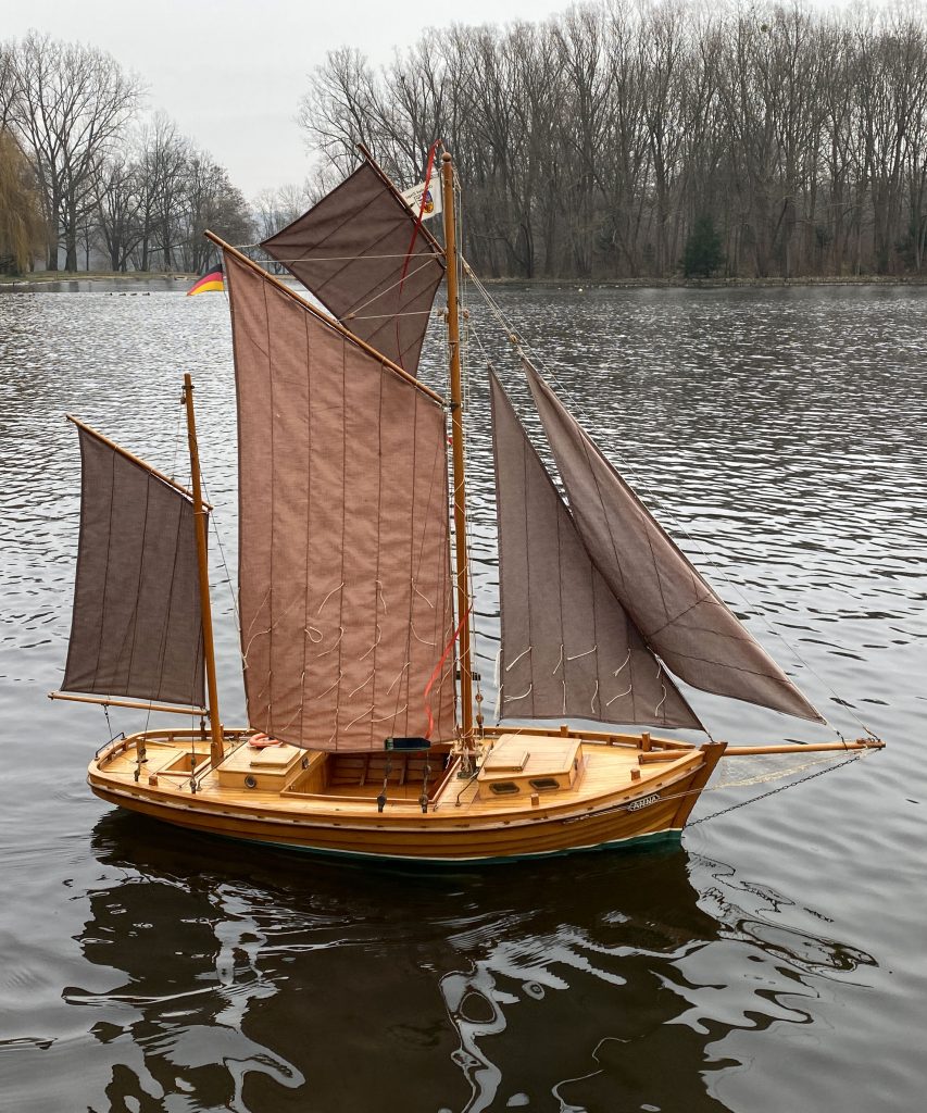 Maßstab 1:15 , abnehmbarer Bleikiel , verstellbare Segel , Baujahr 2018, Bauzeit 2 Jahre