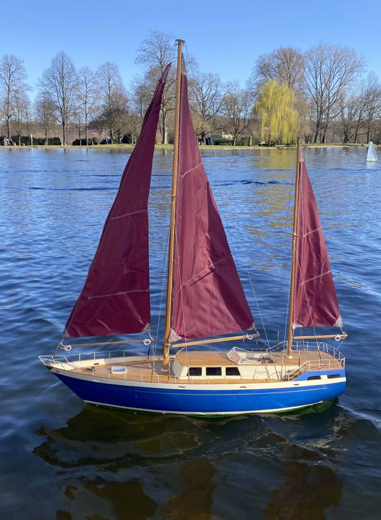 Eine ex „Rubin“, Erbstück von Michael Frechen, umlackiert, technisch verbessert, neue Segel